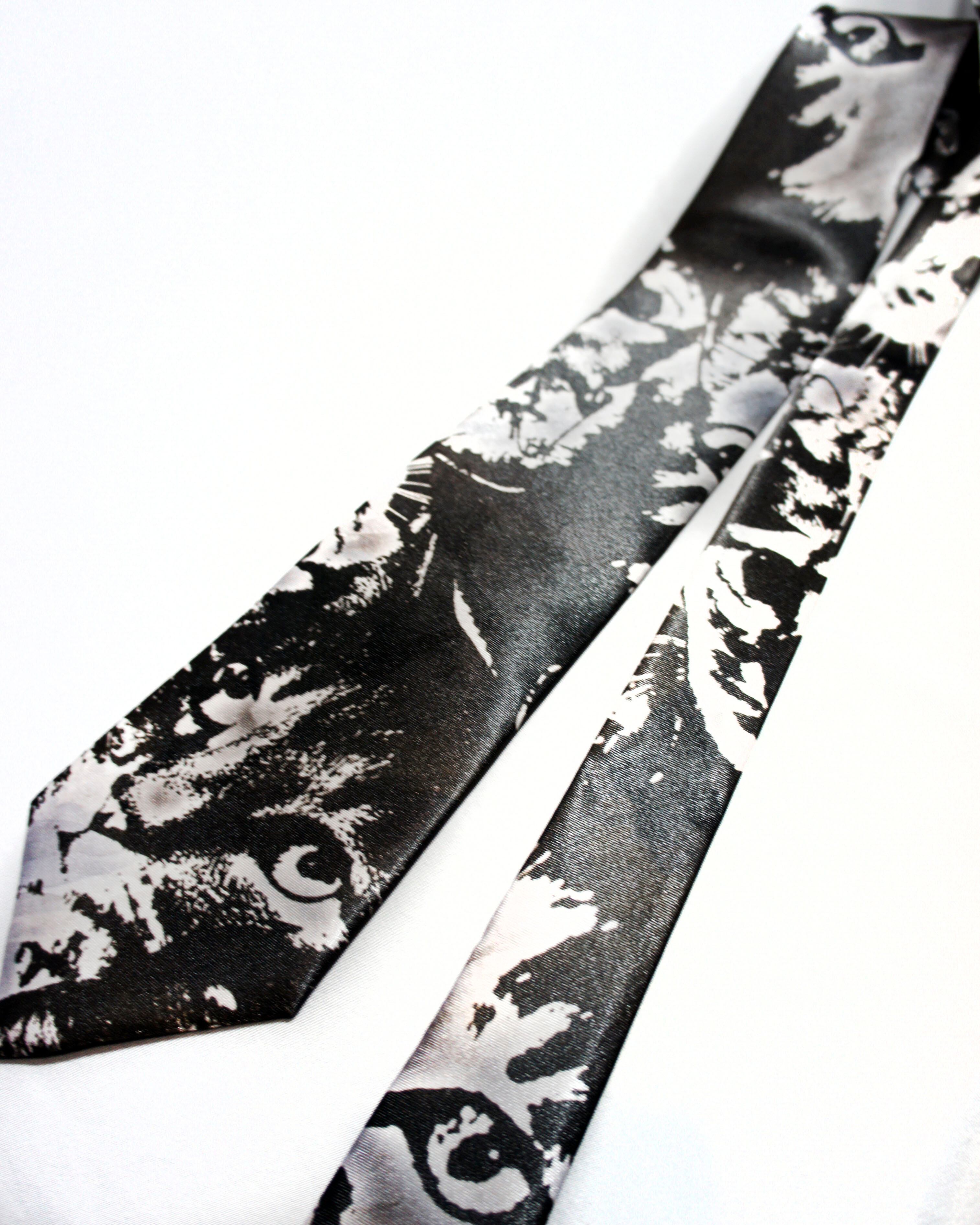 猫モチーフ、猫のお顔が大きくたくさん入った個性派デザインのネクタイ。