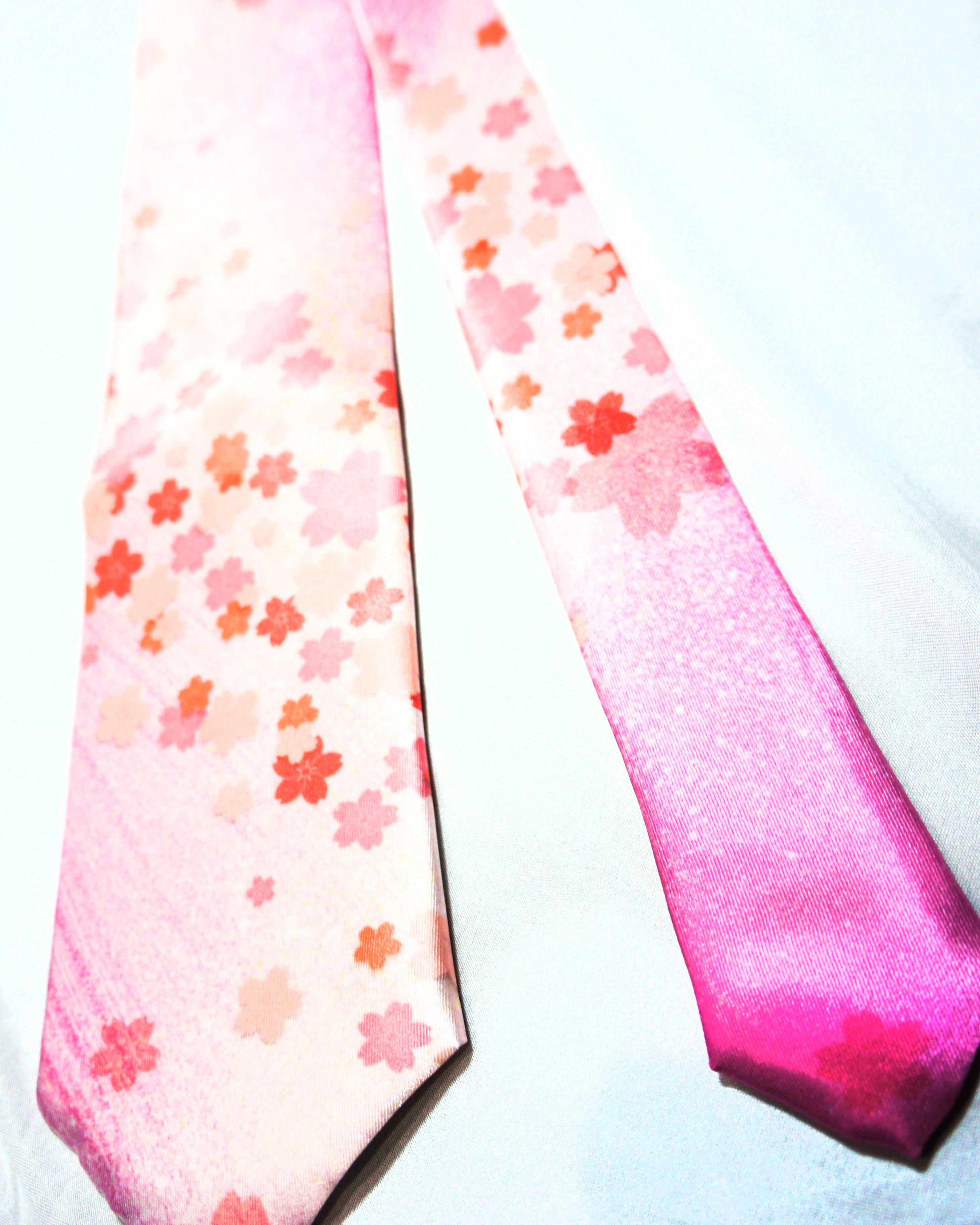 和柄シリーズ、桜柄の個性派デザインのネクタイ。