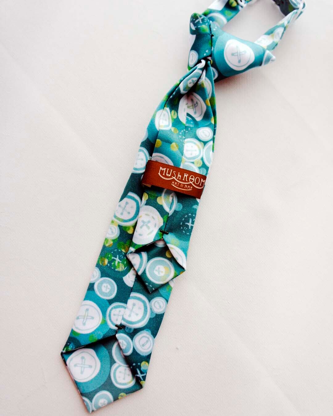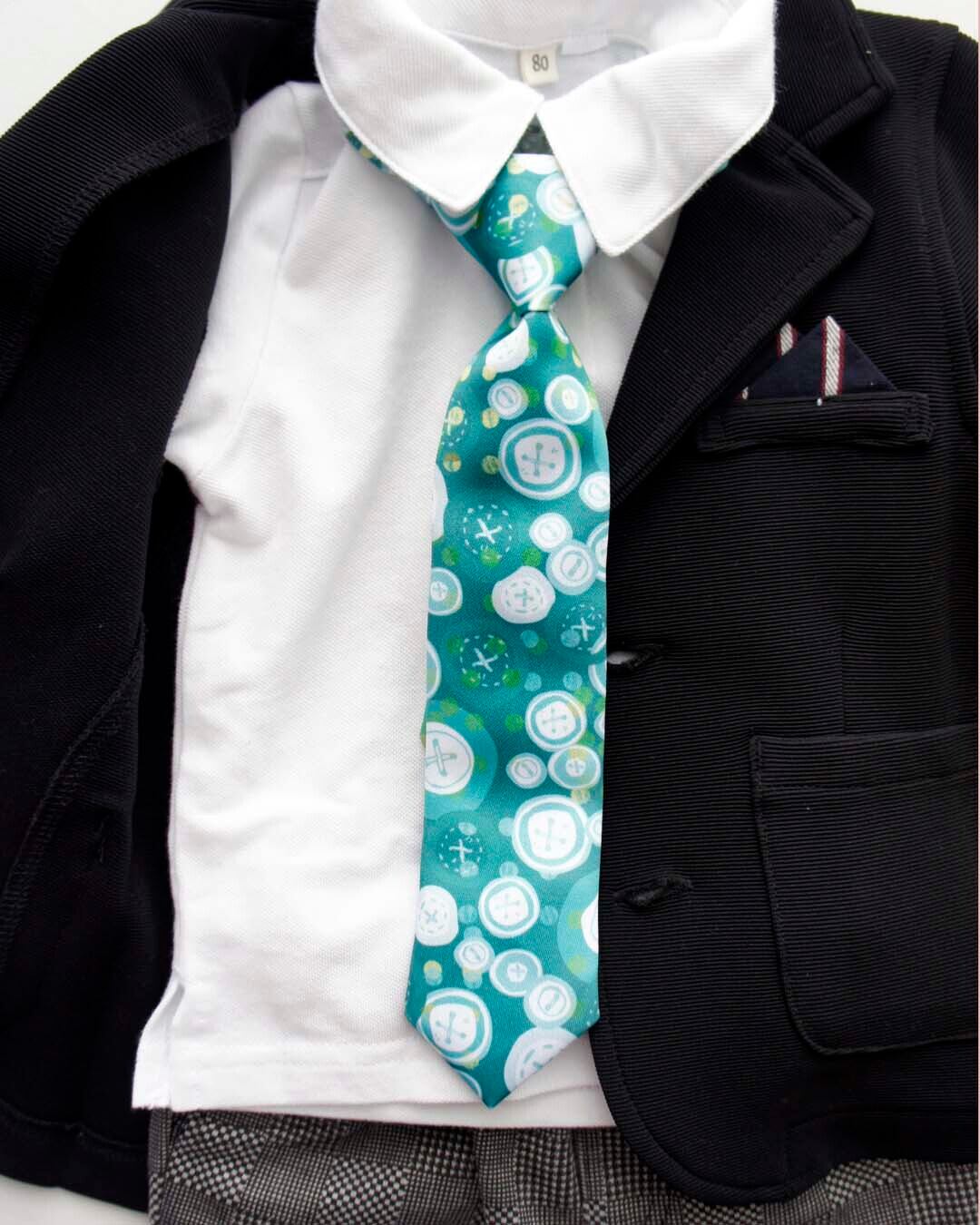 mushroomネクタイ・キッズ【キッズネクタイ】【子供用ワンタッチネクタイ】【ボタン】【グリーン】