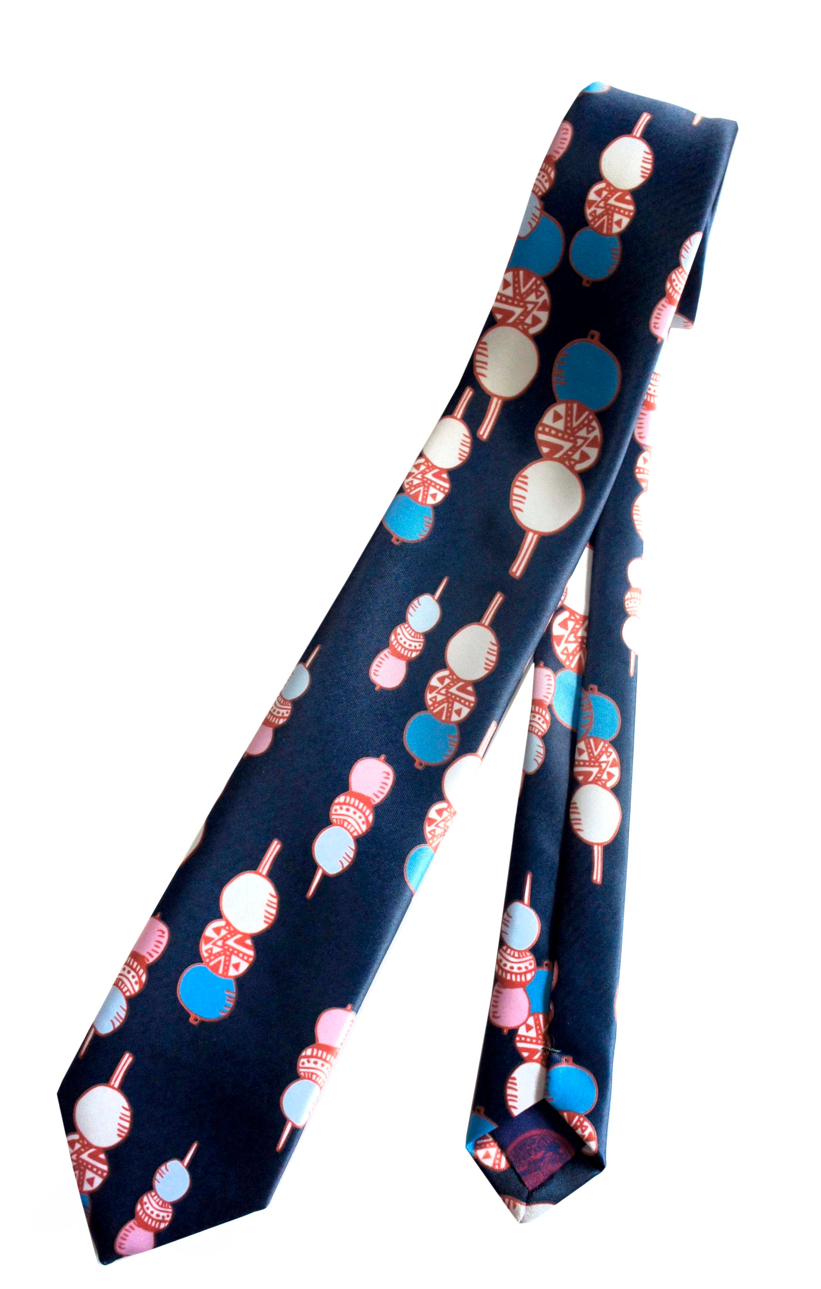 mushroomネクタイ【一点物】【個性派】【団子/ブルー】