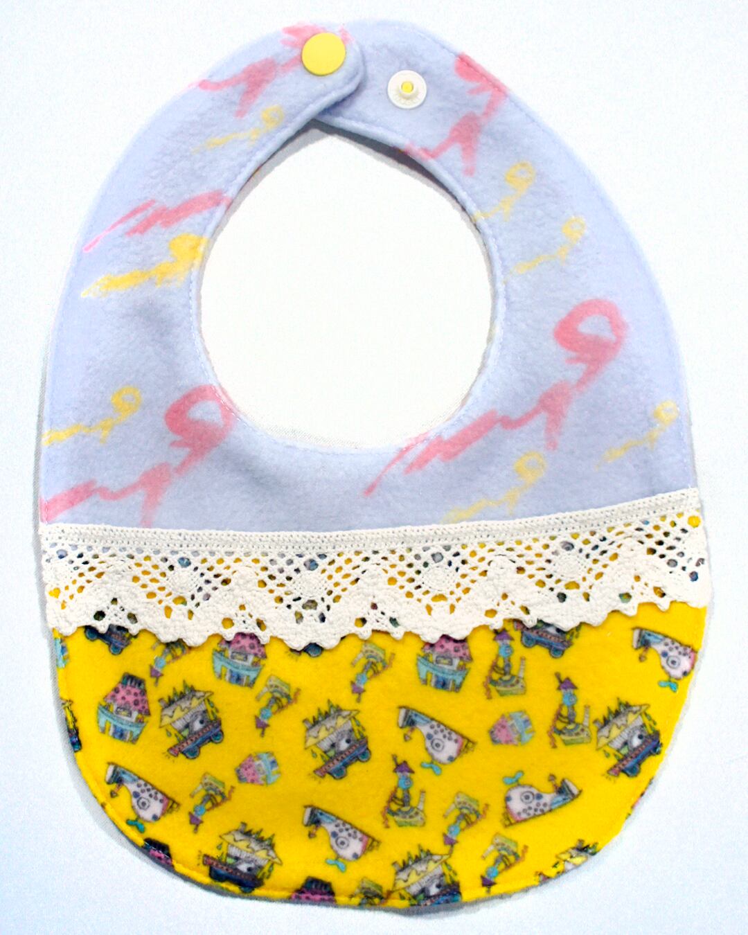 mushroomベビースタイ【よだれかけ】【リバーシブル】【一点物】【レース2イエローパープル】