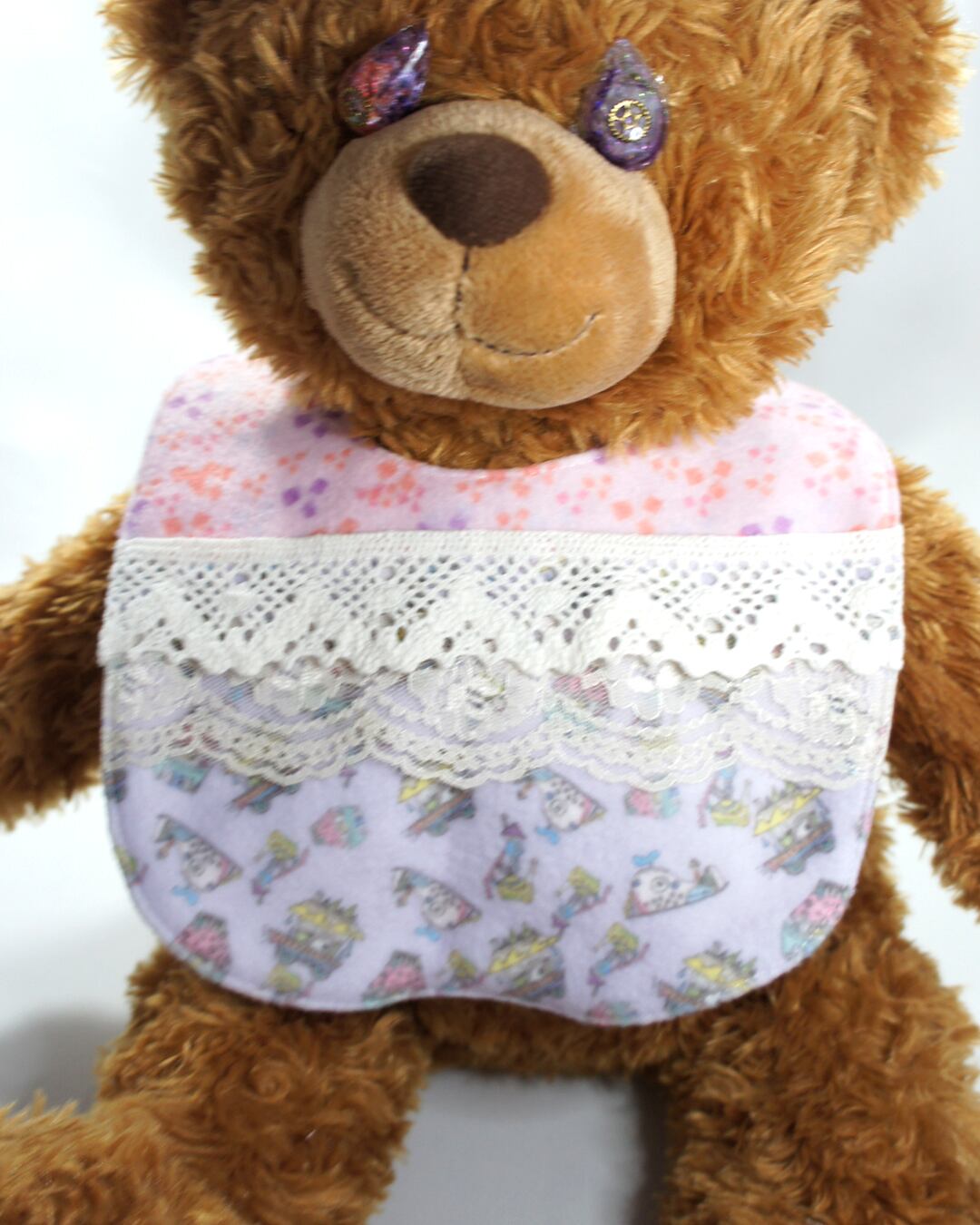 mushroomベビースタイ【よだれかけ】【リバーシブル】【一点物】【レース2ピンクパープル】