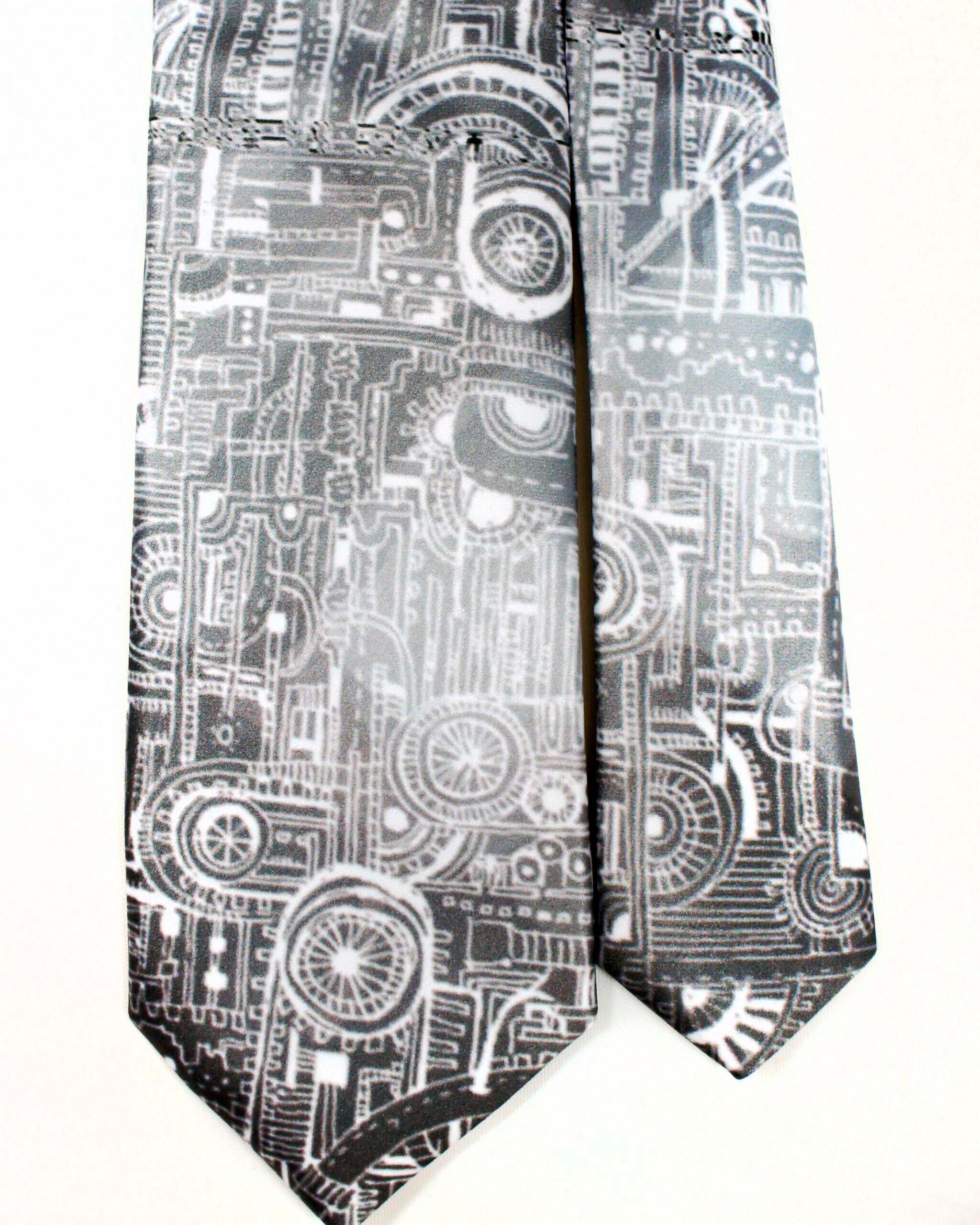 【廃工場2ホワイトグレー・個性派ネクタイ】