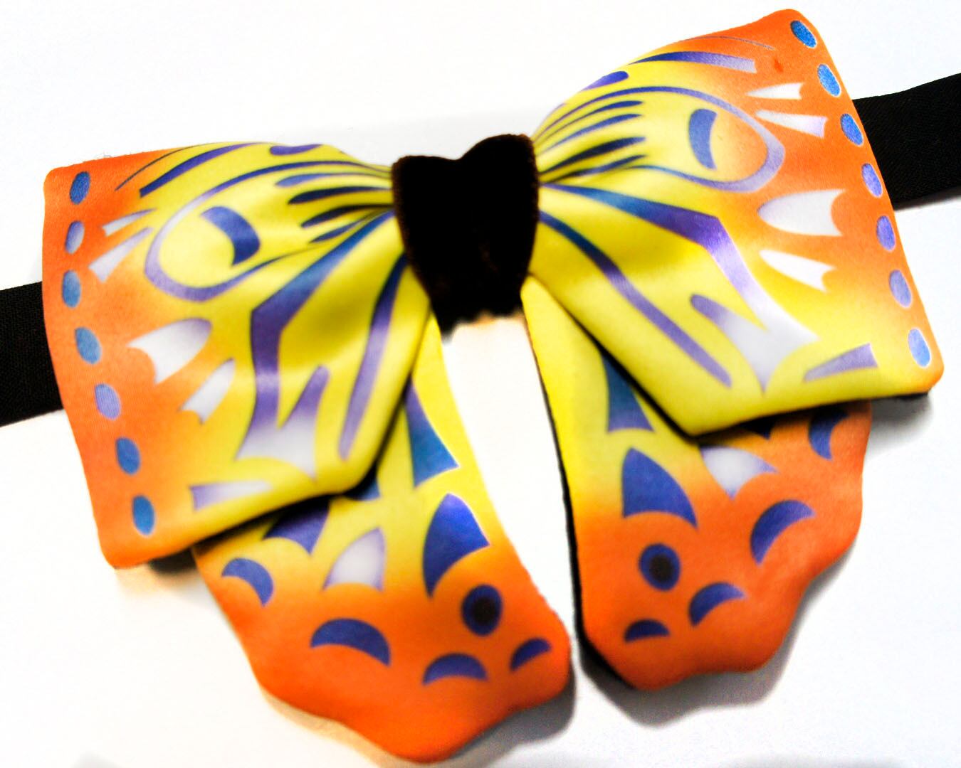 mushroom蝶ネクタイ【一点物】【個性派】【アゲハ蝶デザイン オレンジイエロー】