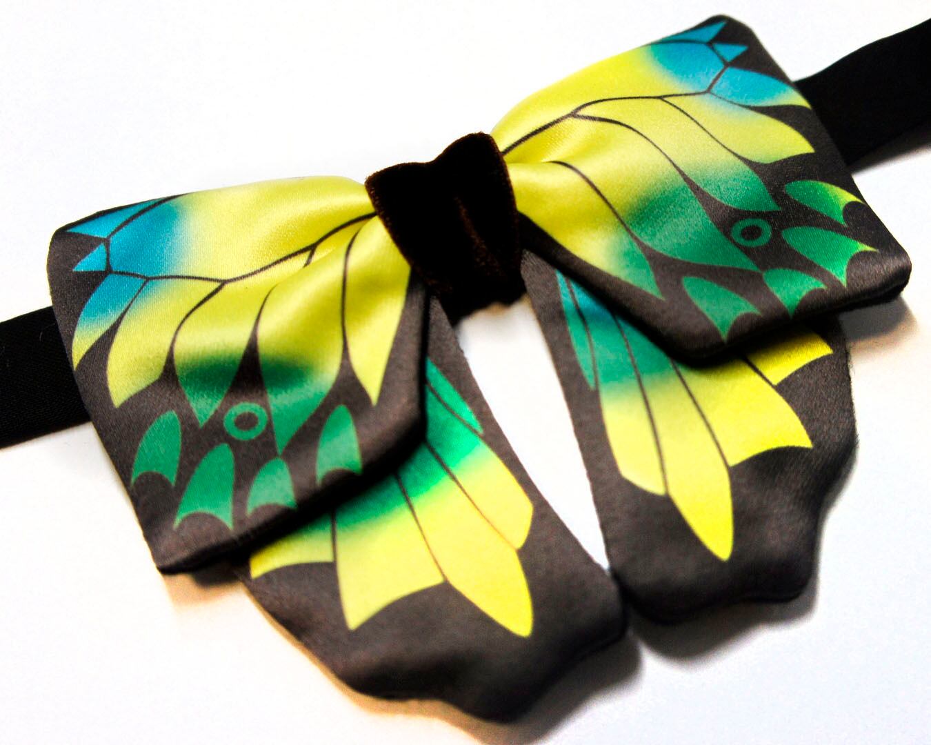 mushroom蝶ネクタイ【一点物】【個性派】【アゲハ蝶デザイン イエローグリーン】