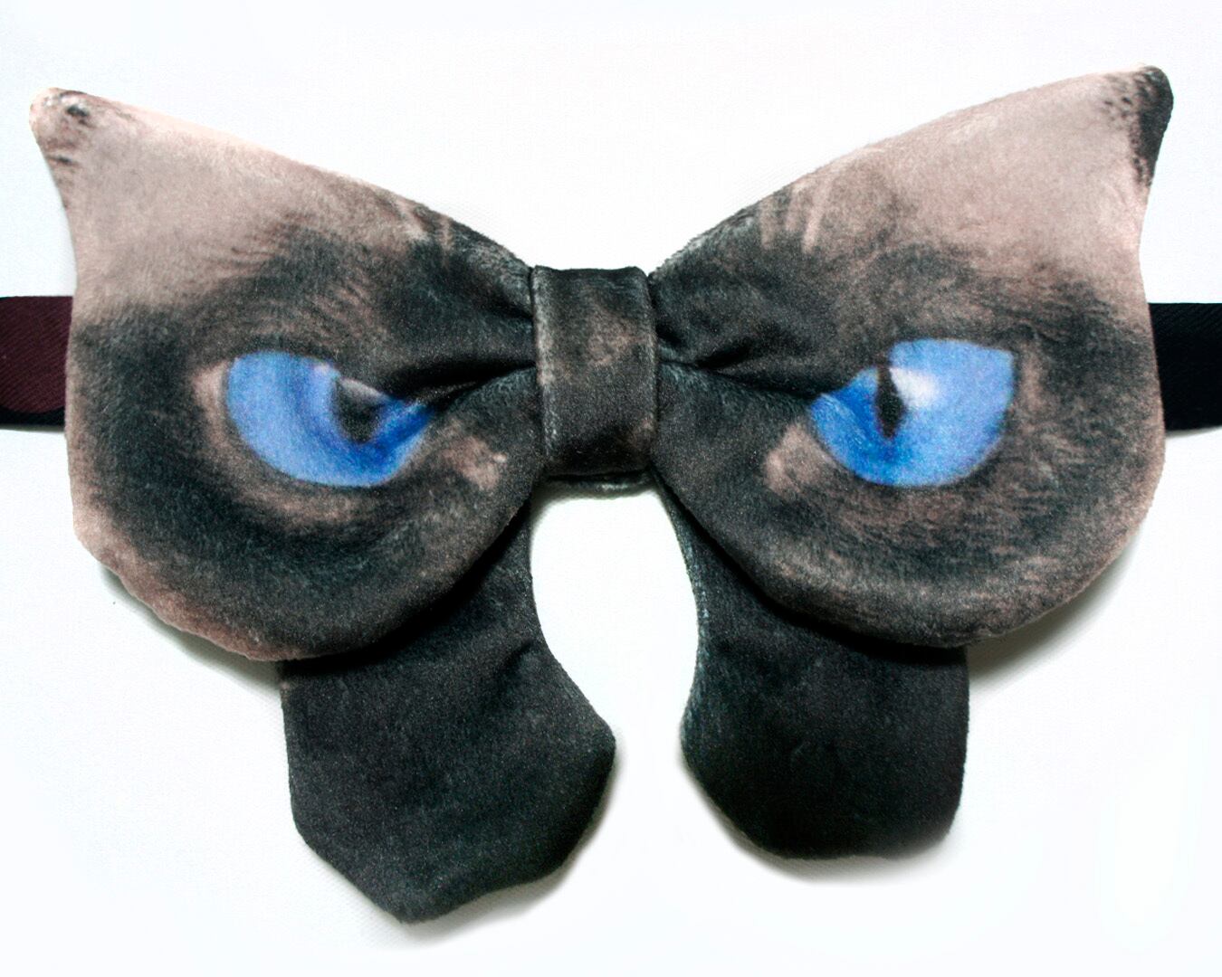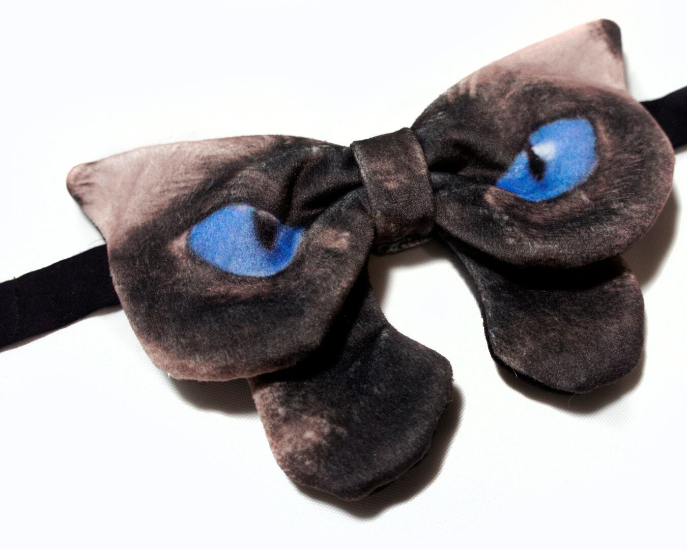 猫のお顔デザインの大ぶり蝶ネクタイ。目力溢れるかわいい猫ちゃん。