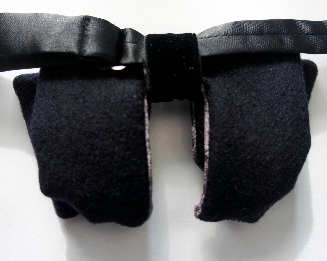 ☆アゲハ蝶ネクタイ ベロアシシーズ⇒ボリュームがありキラキラとした輝きのある生地です。着用するとぽてっとリボンを結んだ様に下向きに仕上がります。