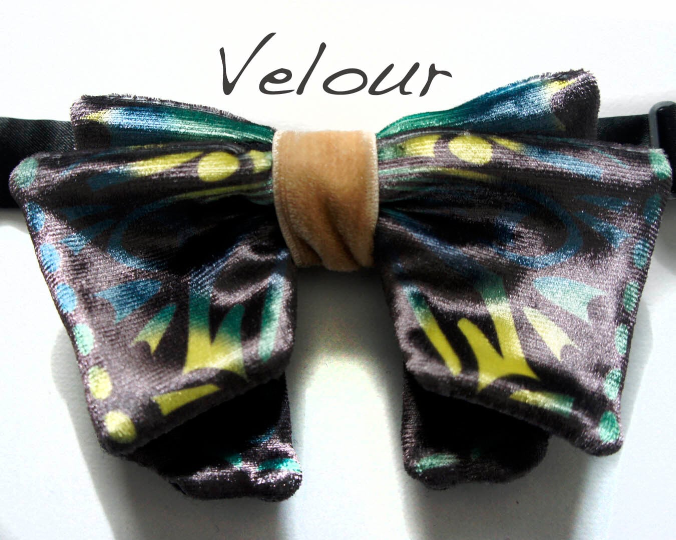 ☆アゲハ蝶ネクタイ ベロアシシーズ⇒ボリュームがありキラキラとした輝きのある生地です。着用するとぽてっとリボンを結んだ様に下向きに仕上がります。