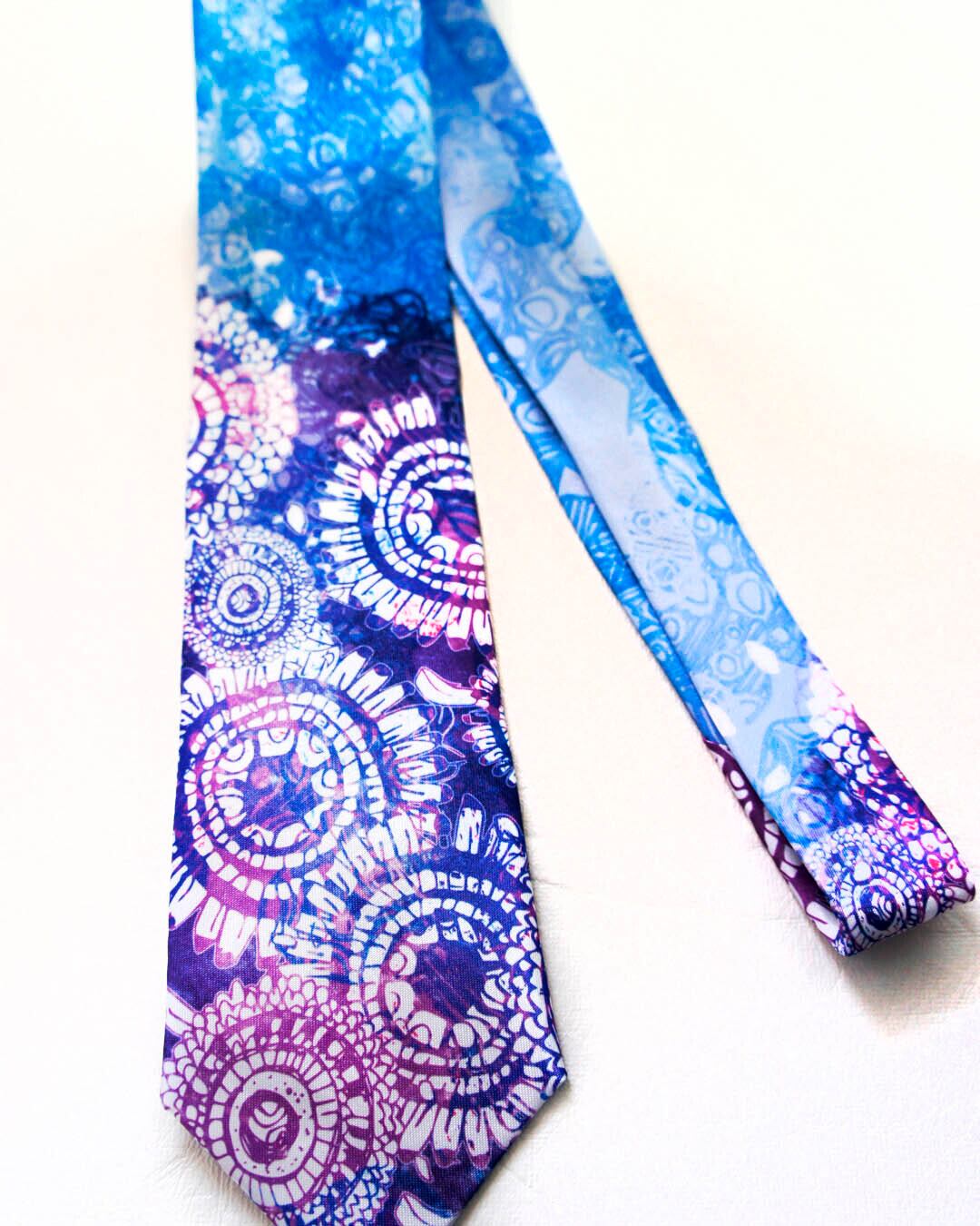 鮮やかなカラーのお花柄デザインの細身ネクタイ。