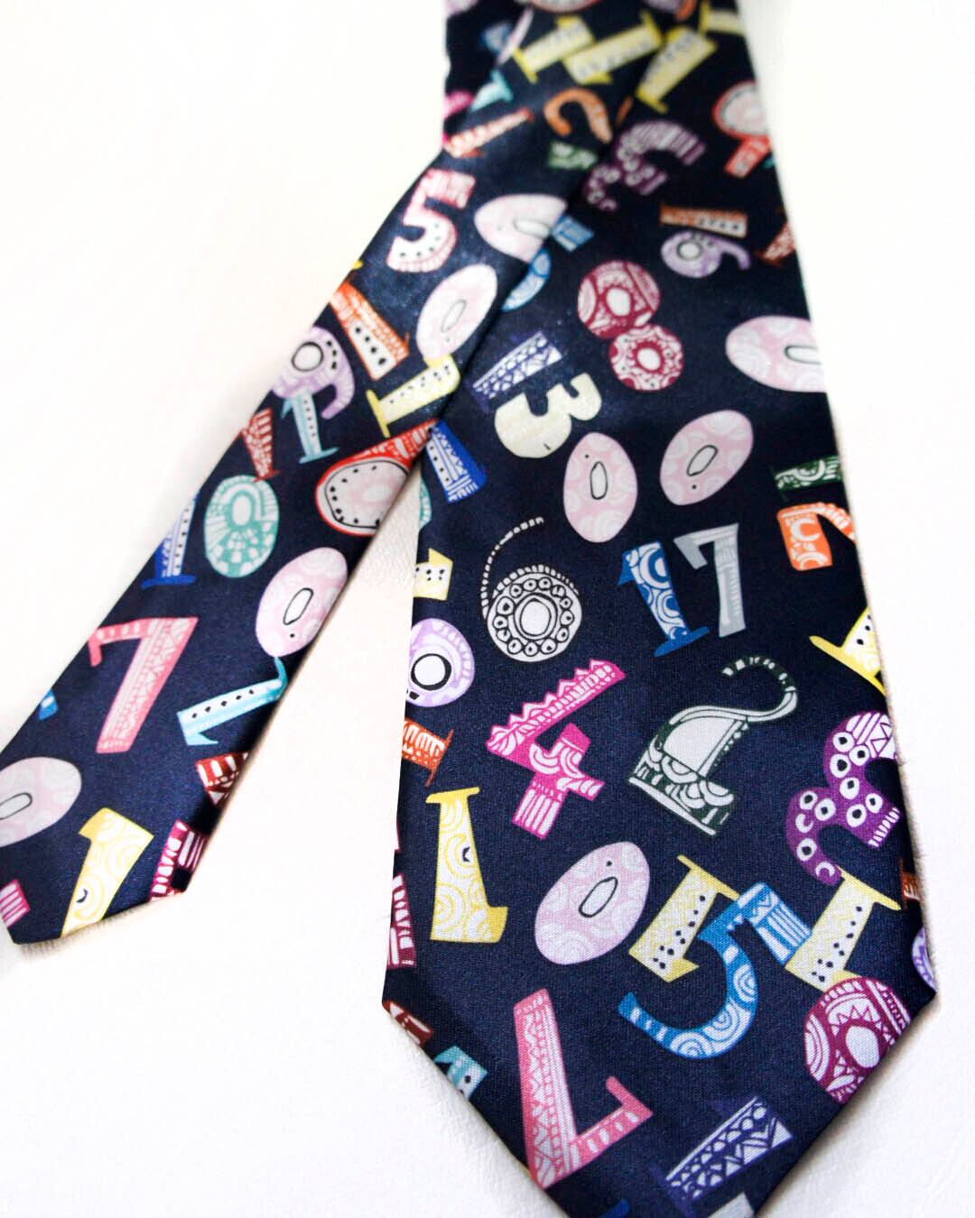 鮮やかなカラーの数字デザインの細身ネクタイ。